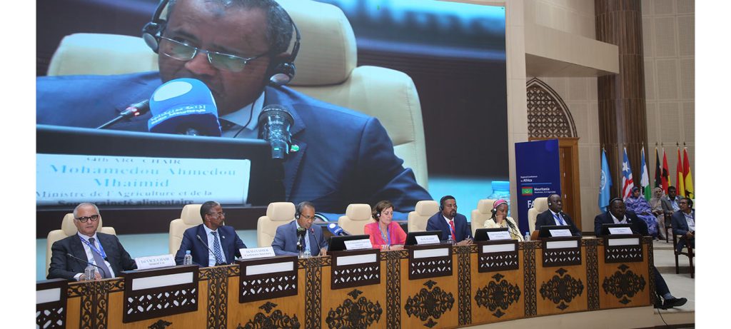اختتمت مساء اليوم الجمعة بالمركز الدولي للمؤتمرات “المرابطون” في نواكشوط، اشغال الدورة ال 34 للمؤتمر الإقليمي لمنظمة “الفاو” لأفريقيا التي احتضنتھا بلادنا خلال الفترة ما بين 13 و17 من أبريل الجاري. وأوضح معالي وزير الزراعة والسيادة الغذائية، السيد محمدو أحمدو أمحيميد، رئيس الدورة ال 34 للمؤتمر الإقليمي لمنظمة “الفاو” لأفريقيا، لدى إشرافه على حفل اختتام […]