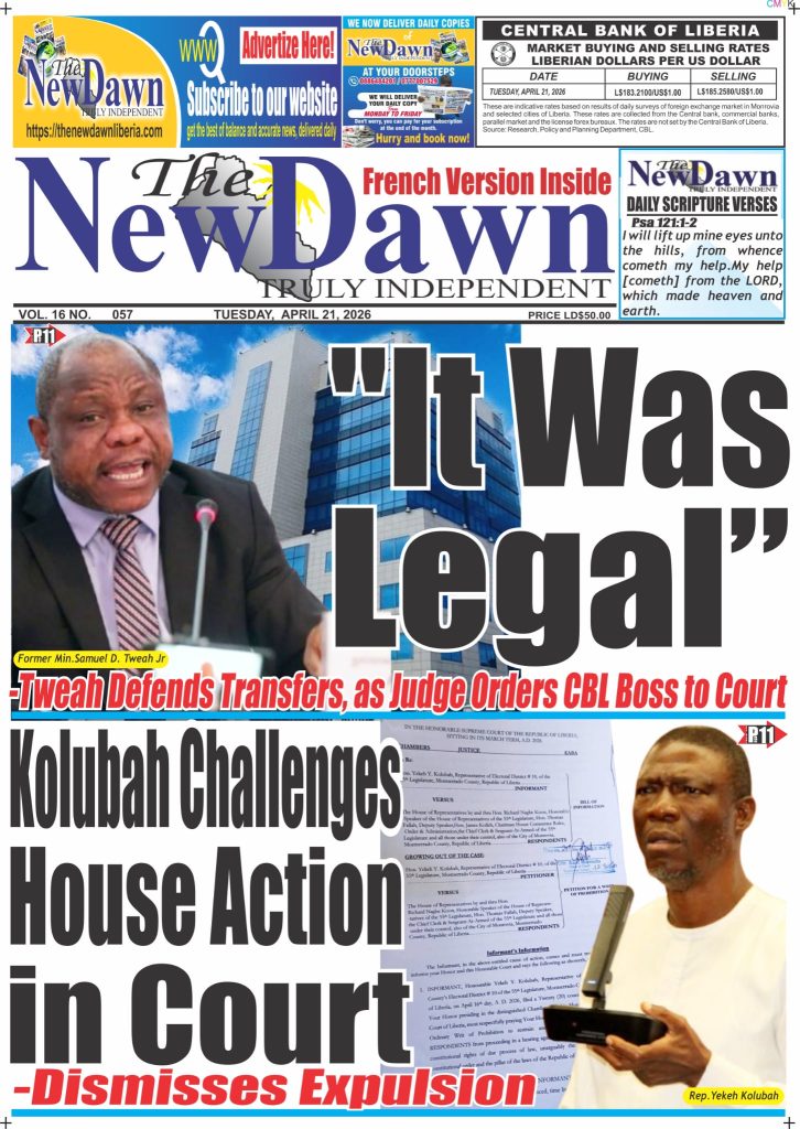 Vol.16 No. 57 TUESDAY, APRIL 21, 2026Download The post Vol.16 No. 57 TUESDAY, APRIL 21, 2026 appeared first on Liberia news The New Dawn Liberia, premier resource for latest news. Source link