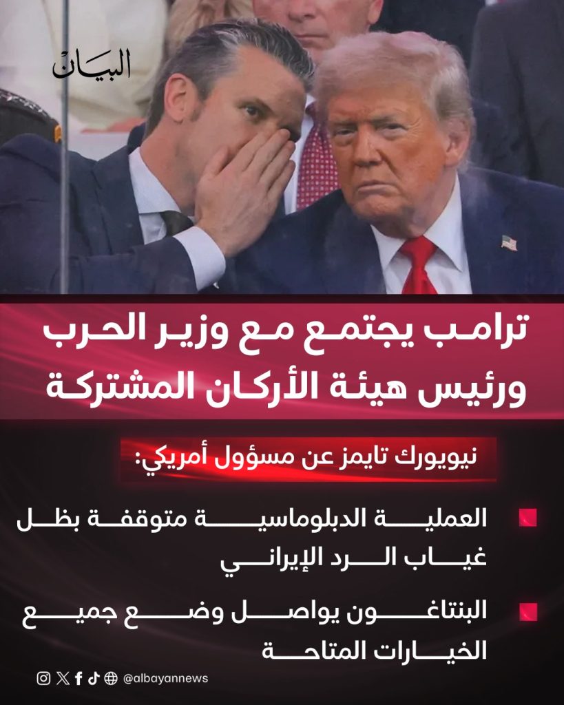 ترامب يجتمع مع وزير الحرب ورئيس هيئة الأركان المشتركة #صحيفة_البيان Facebook