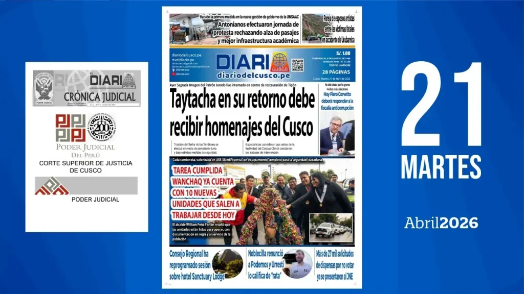 Antonianos efectuaron jornada de protesta rechazando alza de pasajes y mejor infraestructura académicaHa sido la primera medida en la nueva gestión de gobierno de la UNSAAC. Pareja de esposos artistas entre las víctimas fatales en accidente de Urubamba Taytacha en su retorno debe recibir homenajes del CuscoAyer la sagrada imagen del Patrón Jurado fue internada […]