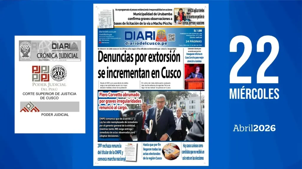 Municipalidad de Urubamba confirma graves observaciones a bases de licitación de la vía a Machu PicchuHa reprogramado el proceso, evidenciando irresponsabilidad en las acciones. MINEDU agiliza trámites de docentes en gestión de licencias, permisos y vacaciones Denuncias por extorsión se incrementan en CuscoSe elevaron en siete veces en los últimos años, según cifras oficiales, evidenciando […]