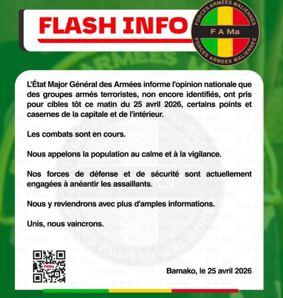 #Mali : #Urgent #Communiqué de l’Armée sur les attaques terroristes de ce samedi dans plusieurs endroits du pays Facebook