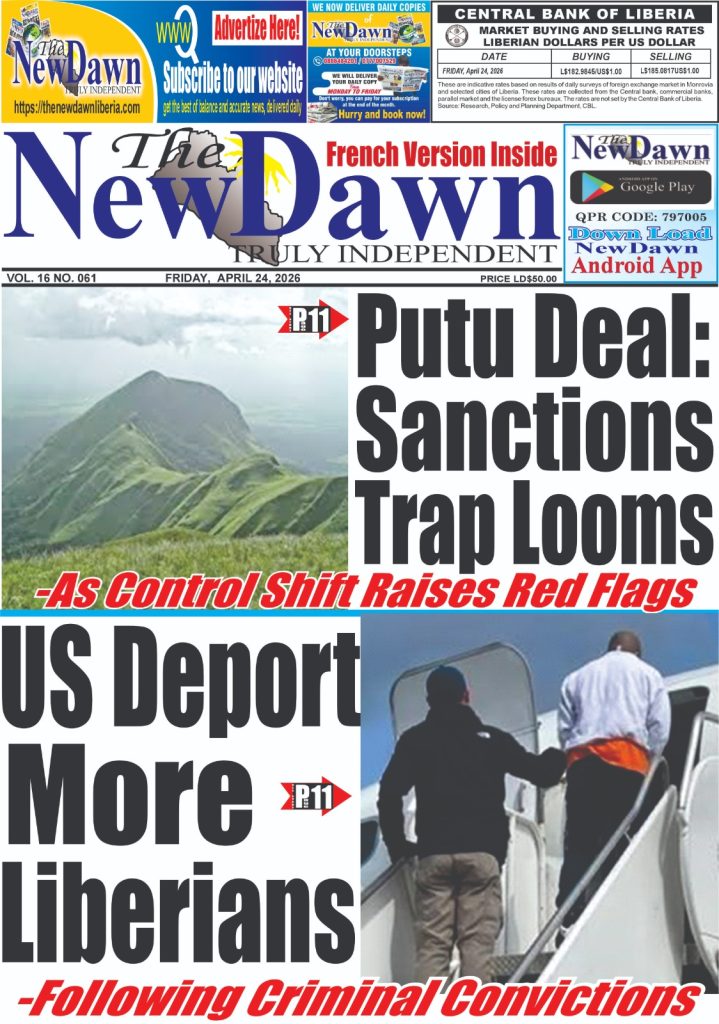 Vol.16 No. 061 FRIDAY, APRIL 24, 2026Download The post Vol.16 No. 061 FRIDAY, APRIL 24, 2026 appeared first on Liberia news The New Dawn Liberia, premier resource for latest news. Source link