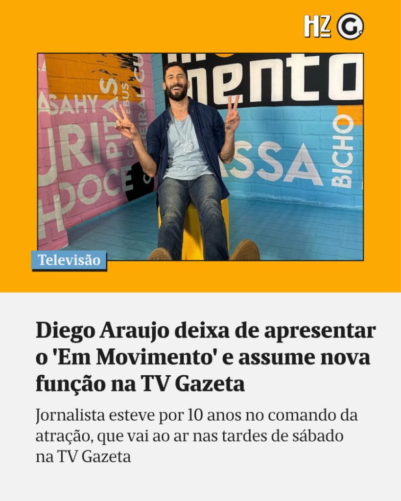 📺 Após atuar por 10 anos como apresentador do programa ‘Em Movimento’, da TV Gazeta, o jornalista Diego Araujo inicia uma nova fase em sua carreira. Com o talento e o alto astral que marcaram suas reportagens de Norte a Sul do Espírito Santo, Diego passa a atuar como editor-assistente de entretenimento.⠀ ⠀ 💬 A […]