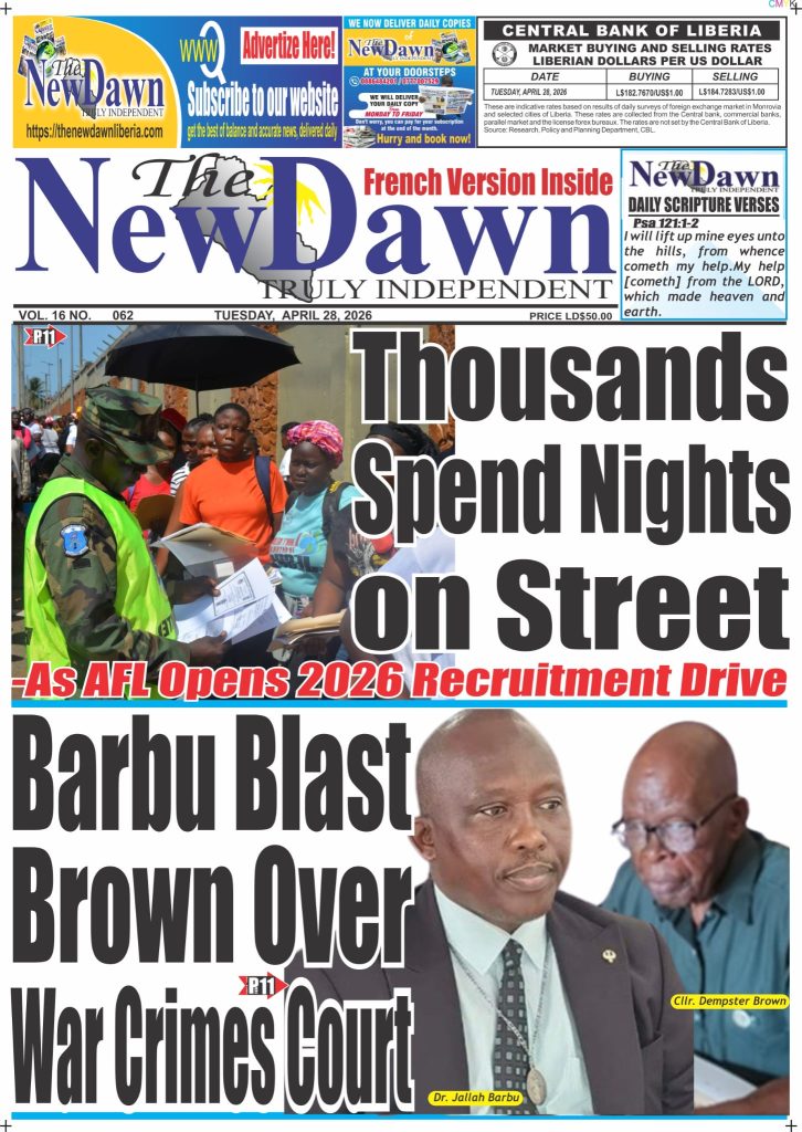 Vol.16 No. 62 TUESDAY, APRIL 28, 2026Download The post Vol.16 No. 62 TUESDAY, APRIL 28, 2026 appeared first on Liberia news The New Dawn Liberia, premier resource for latest news. Source link