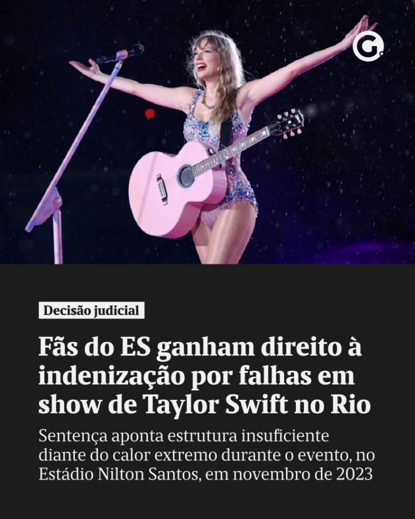 ⚖️ Quatro fãs do Espírito Santo que foram ao Rio de Janeiro para o show de Taylor Swift, em 17 de novembro de 2023, ganharam na Justiça o direito à indenização por danos morais. A decisão é da 4ª Vara Cível de Vila Velha e fixa o valor de R$ 3 mil para cada um, […]