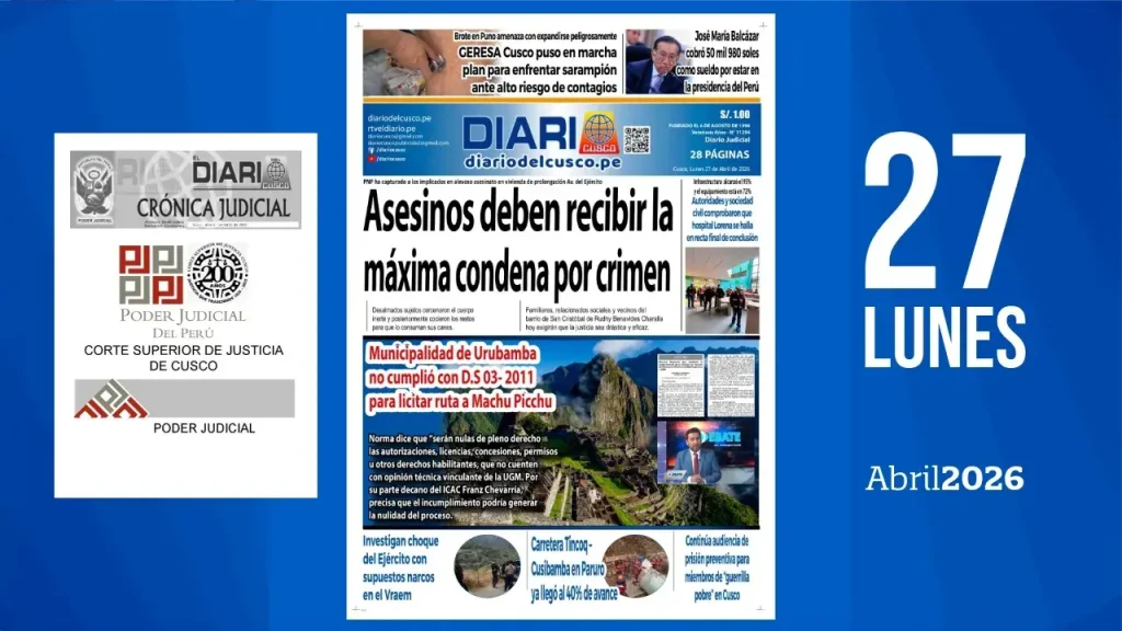 GERESA Cusco puso en marcha plan para enfrentar sarampión ante alto riesgo de contagiosBrote en Puno amenaza con expandirse peligrosamente. José María Balcázar cobró 50 mil 980 soles como sueldo por estar en la presidencia del Perú Asesinos deben recibir la máxima condena por crimenLa PNP ha capturado a los implicados en el alevoso asesinato […]