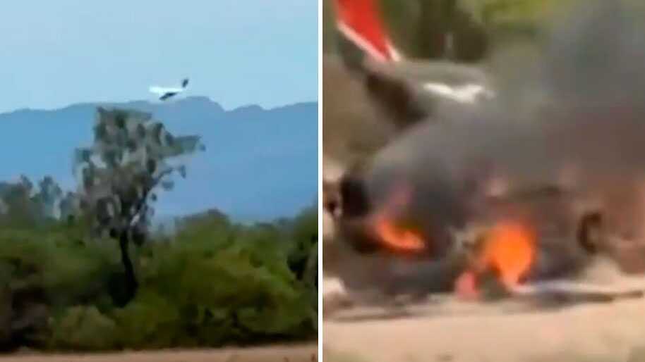 Las imágenes muestran que, en el lugar donde se produjo el accidente, estaba la avioneta y otro vehículo que había sido prendido fuego.