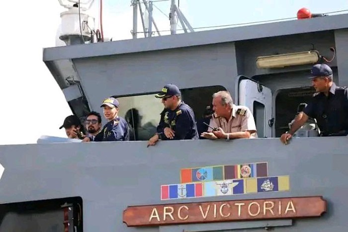 La capitana de fragata María Angela Fuentes Calderón, comandante de la fragata, refirió a la Agencia Cubana de Noticias que participan en la entrega la Unidad Nacional de Gestión de Riesgo y la armada colombiana.