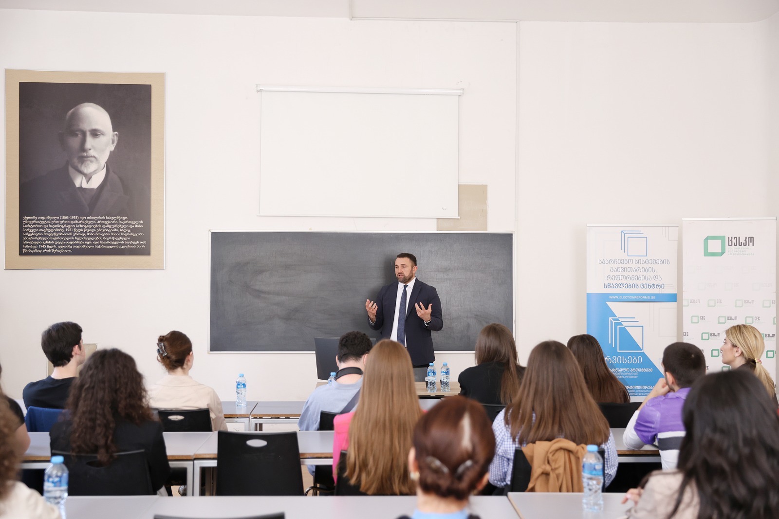 დღეს ივანე ჯავახიშვილის სახელობის თბილისის სახელმწიფო უნივერსიტეტში პროგრამის მიმდინარეობას ცესკოს თავმჯდომარე პირადად გაეცნო და მონაწილე სტუდენტებს აქტუალური საარჩევნო საკითხებისა და იმ მნიშვნელოვანი საქმიანობების შესახებ ესაუბრა, რომლებიც საარჩევნო ადმინისტრაციამ ბოლო წლების განმავლობაში განახორციელა. საუბარი ასევე შეეხო 2024-2025 წლებში ჩატარებულ საერთო არჩევნებს, რომელშიც ადმინისტრაციამ საარჩევნო ელექტრონული ტექნოლოგები წარმატებით დანერგა. აღინიშნა, რომ ხსენებულმა სიახლეებმა მნიშვნელოვნად გააუმჯობესა მომსახურების ხარისხი, ასევე საარჩევნო პროცესის ეფექტიანობა და სისწრაფე. ცესკოს თავმჯდომარემ ასევე ვრცლად ისაუბრა დეზინფორმაციაზე და მასთან დაკავშირებულ გამოწვევებზე, დეზინფორმაციასთან ბრძოლის სტრატეგიებსა და შედეგებზე.