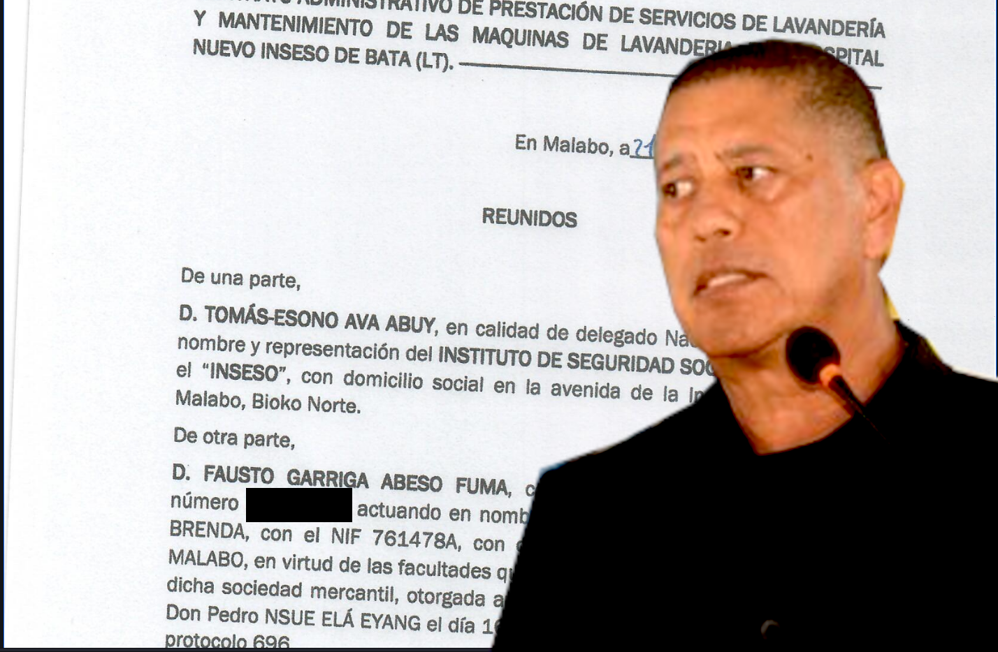 Uno de los expedientes más escandalosos a los que ha tenido acceso este diario es el contrato administrativo para la prestación de servicios de lavandería y mantenimiento de maquinaria del Hospital Nuevo INSESO de Bata. El beneficiario no es otro que el Hotel Villa Brenda SL, una empresa representada legalmente por Fausto Garriga Abeso Fuma, yerno del dictador y figura clave en el entramado empresarial que succiona los fondos públicos del país.
