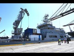 The Dutch Navy support ship, HNLMS Pelikaan, docked in the Kington Harbour yesterday carrying power generators, solar lamps, batteries, medical and health supplies, emergency shelter materials, and vehicles to assist communities hardest hit by the hurricane.