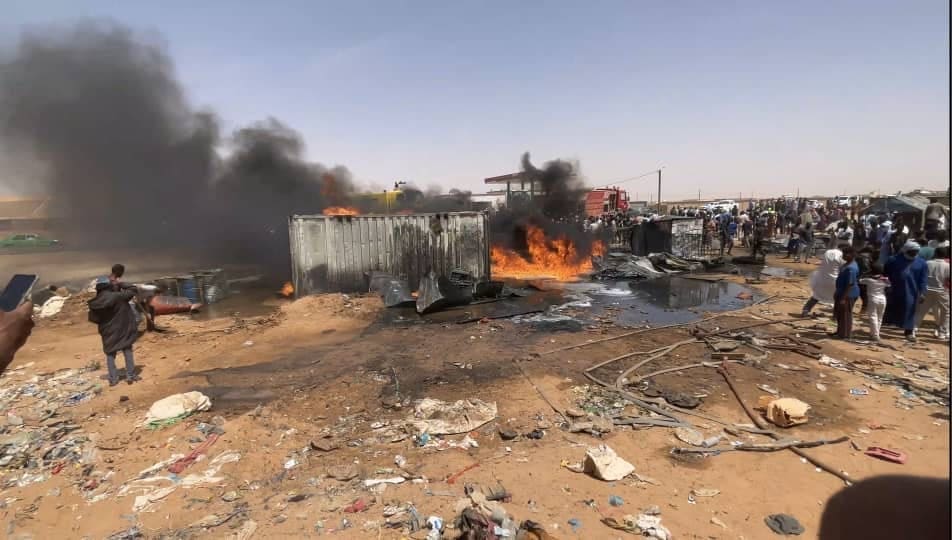 اندلع حريق صباح اليوم في منطقة لبيريكه شرقي مدينة ازويرات على الطريق الرابط بينها وكلب الغين، متسبباً في خسائر مادية بعد احتراق أربعة محلات لبيع المحروقات، وفق ما أفاد به مراسل محلي.