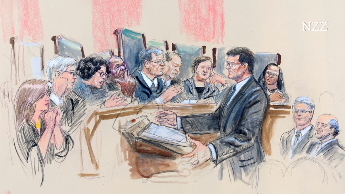 Entscheidend war, dass mit dem Gerichtsvorsitzenden John Roberts, Neil Gorsuch und Amy Coney Barrett auch mehrere konservative Richter immer wieder hartnäckig nachfassten. Wenn sie sich auf die Seite der drei linken Richter schlagen, wird Trump den Fall verlieren.