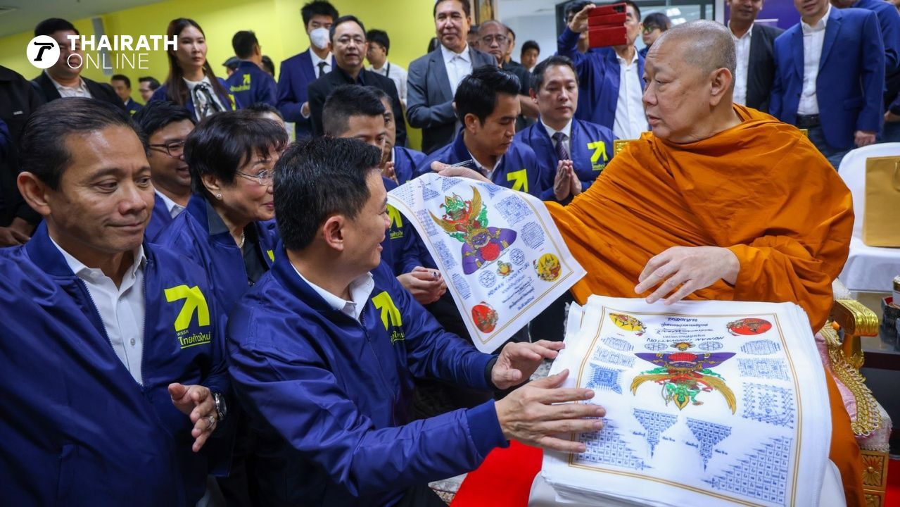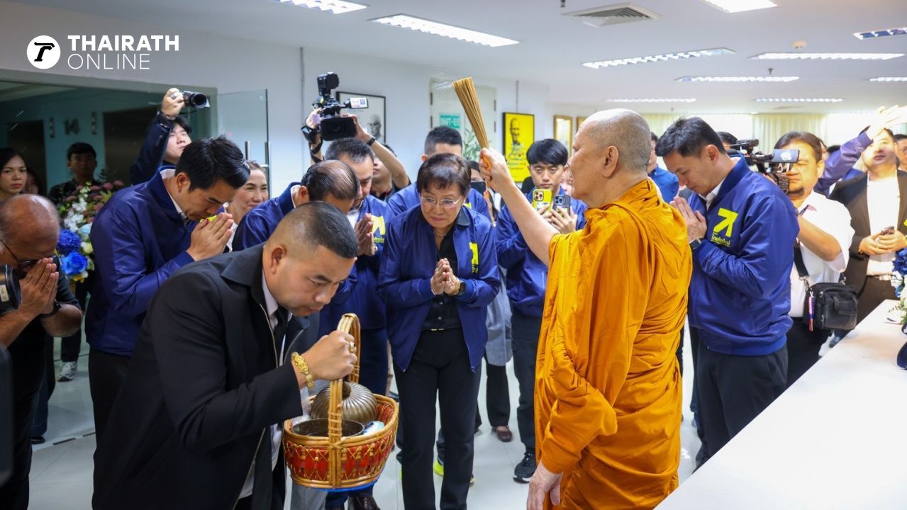 บรรยากาศช่วงเช้าเริ่มด้วยพิธีทางศาสนาอิสลามเวลา 08.30 น. และพิธีทางศาสนาพุทธเวลา 09.30 น. โดยมี “เจ้าประคุณสมเด็จพระมหารัชมงคลมุนี (ธงชัย ธมฺมธโช)” เป็นประธานในพิธีเจริญพระพุทธมนต์ เจิมหน้าประตูทางเข้า และพรมน้ำพระพุทธมนต์ภายในพรรคเพื่อความเป็นสิริมงคล พร้อมมอบผ้ายันต์ให้แก่คณะผู้บริหารและผู้ร่วมงาน